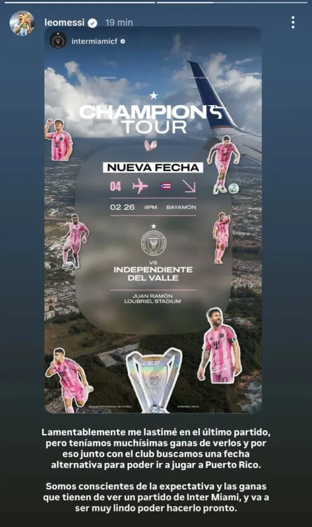 Si bien no se informó un plazo concreto de recuperación, todo indica que el rosarino podría perderse el debut en la MLS ante Los Angeles FC, previsto para el 21 de febrero. La intención sería que pueda reaparecer el 26 de febrero, cuando Inter Miami enfrente a Independiente del Valle en Puerto Rico.
