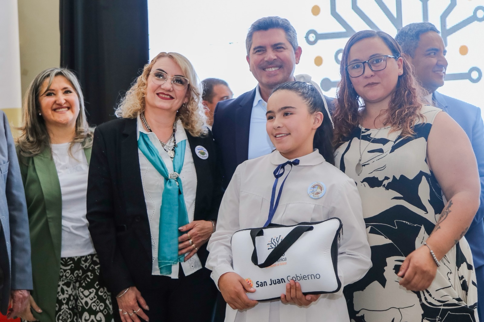 El gobernador Marcelo Orrego, junto a la ministra de Educación Silvia Fuentes, encabezó una nueva entrega de netbooks del programa “Maestro de América, cultivando el futuro”, destinado a promover la alfabetización digital y fortalecer el aprendizaje en las aulas. En esta ocasión, 1.202 estudiantes de 12 escuelas de Albardón recibieron sus dispositivos en un acto realizado en la escuela Juan Mantovani.