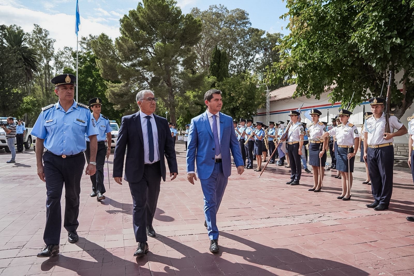 El gobernador de San Juan, Marcelo Orrego, encabezó un acto clave para el fortalecimiento de la seguridad pública, donde se concretó el relevo del subjefe de la Policía, se presentó la nueva Plana Mayor y se realizó la entrega de nuevas movilidades policiales.