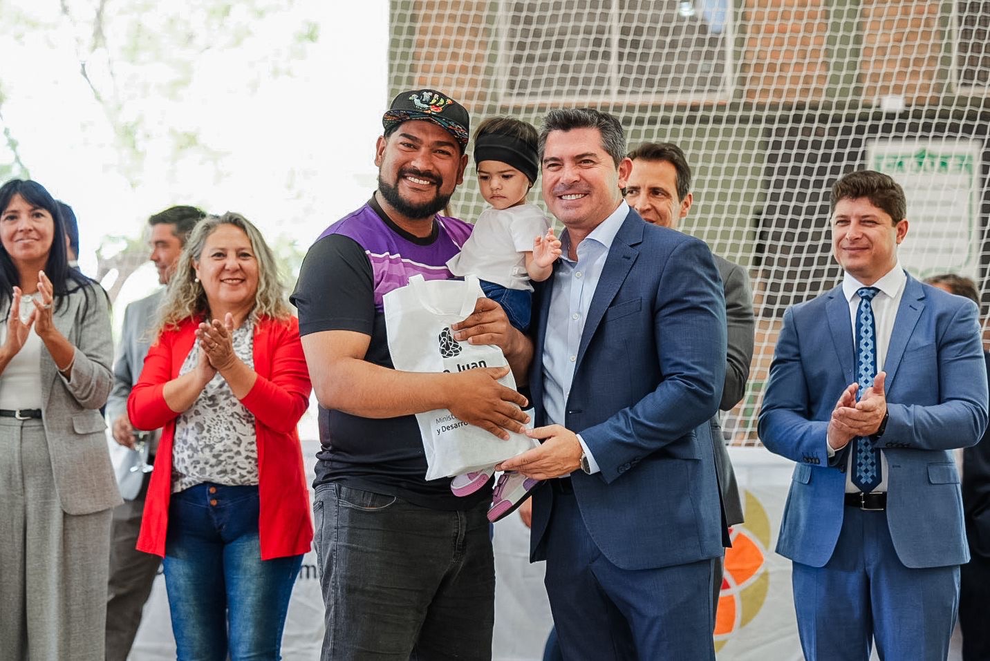 Acompañaron el ministro de Familia y Desarrollo Humano, Carlos Platero; las intendentas de Santa Lucía y Capital; legisladores; y equipos técnicos de asistencia social.
